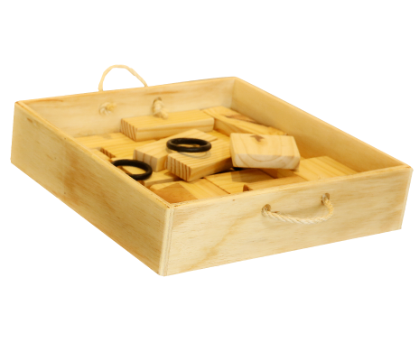 Caixa:10x40x40. Peças: 1) 5a x4,5c – 2) 4,5a x10 c – 3) 4,5 a x 15c – 4) 10a x 10c – 5) Bastão 10 cm