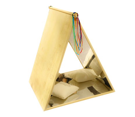 Feito de compensado de Pinus Blank, espelho de acrílico alta definição e encaixe triangular.