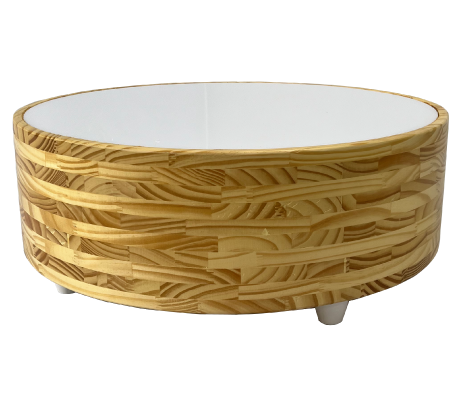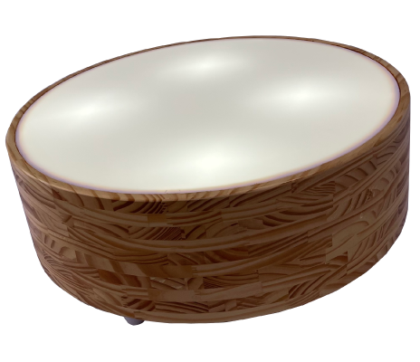 Confeccionado com tabua pinus blank maciça, acrílico 4mm translucido, bivolt e lâmpadas brancas de led, fio com interruptor embutido. Acabamento selador atóxico e lustração dupla.