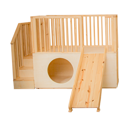 Feito de madeira maciça Pinus. Acabamento selador incolor e lustração especial.