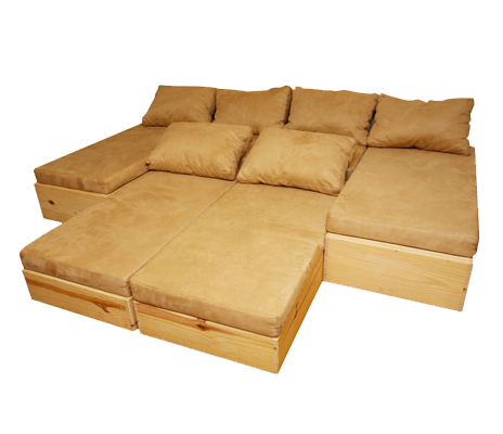 Acabamento selador incolor e lustração especial. Almofadas com espuma, capa com zíper para higienização.